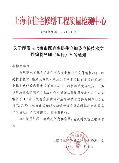 上海市既有多層住宅加裝電梯技術文件編制導則 (試行)...